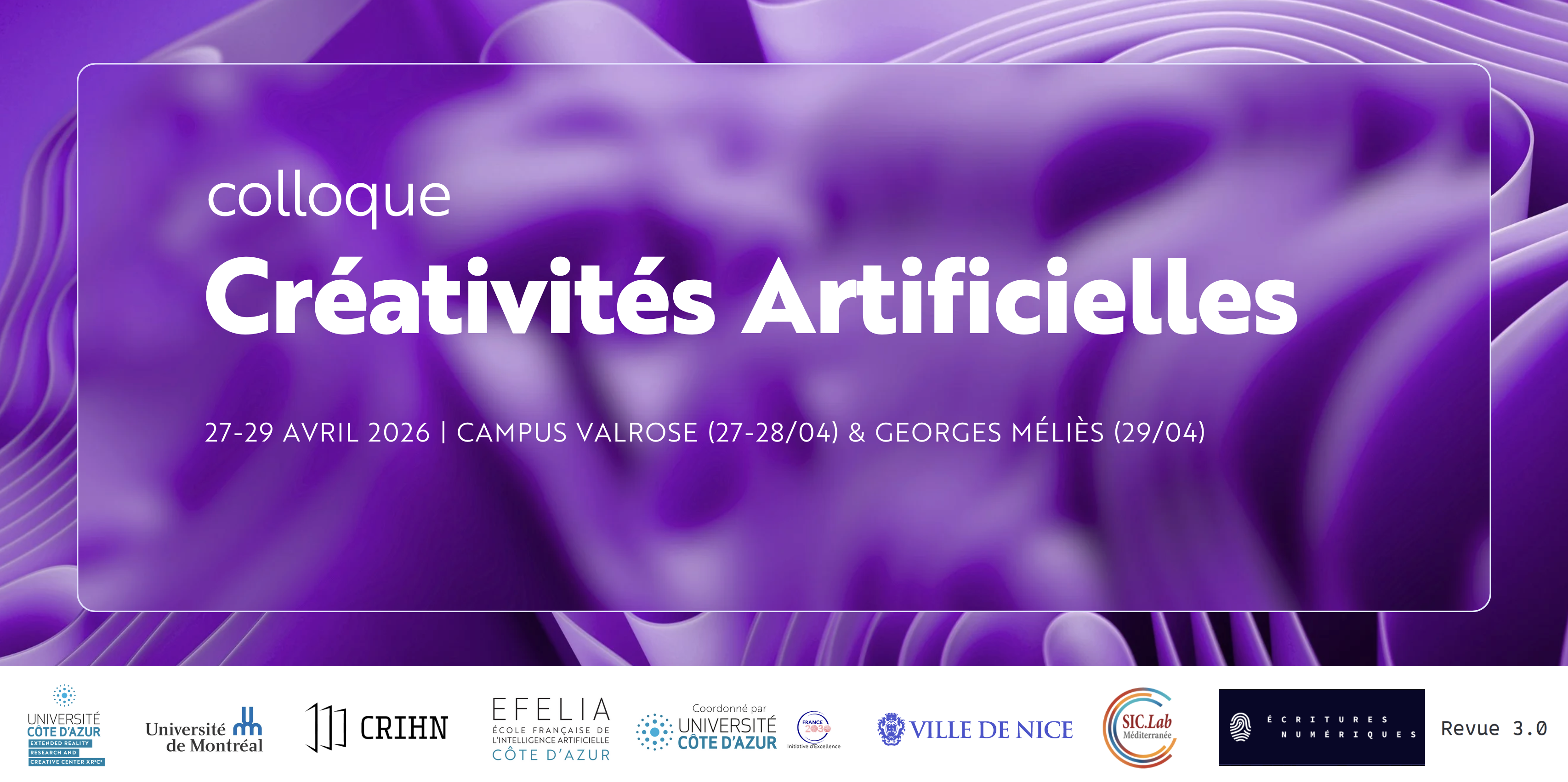 Du 27 au 29 avril 2026, le Centre XR2C2 organise un colloque de trois jours sur le lien entre création et IA en collaboration avec l'Université de Montréal (CRIHN), EFELIA, le Sic.Lab et la Ville de Nice.